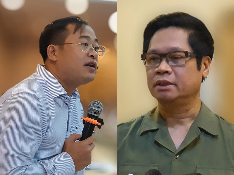 Ông Vũ Tiến Lộc (bên phải): “Nhiều điều kiện kinh doanh chỉ được cắt giảm trên giấy tờ”. Ông Nguyễn Hoài Nam: “Loại bỏ điều kiện kinh doanh cần cụ thể và có tính đột phá hơn thay vì dàn hàng ngang”. Ảnh: A.A