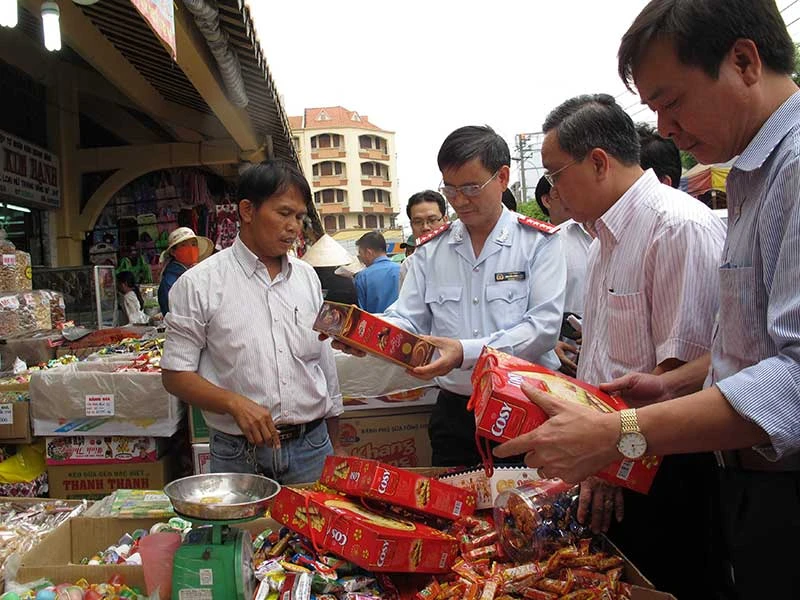 Trong kết quả khảo sát năm 2017, đáng chú ý có hai DN tại TP.HCM thì một DN bị thanh tra 10 lần, còn một DN khác bị thanh tra chín lần. Trong ảnh:Đoàn thanh tra Bộ Y tế và thanh tra liên ngành thành phố kiểm tra an toàn thực phẩm tại TP.HCM. Ảnh minh họa: TTXVN