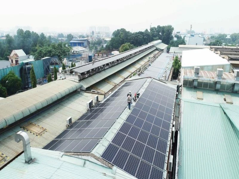 Điện mặt trời áp mái được lắp đặt trên mái nhà của công ty.