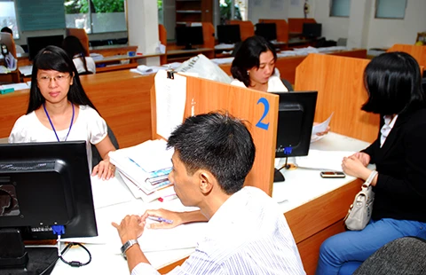 Cán bộ thuế giải đáp thắc mắc về thuế cho DN tại Cục Thuế TP.HCM. Ảnh: HTD