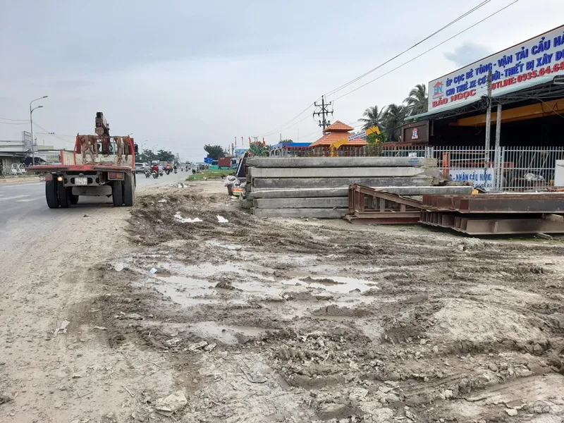 Theo phản ánh của người dân, thời gian gần đây tại Km 8+015 QL60 đoạn qua ngã tư xã An Khánh, huyện Châu Thành (Bến Tre), Công ty TNHH TM-DV-VLXD Bảo Ngọc (địa chỉ: QL60, xã An Khánh, huyện Châu Thành, Bến Tre) đã tự ý xây dựng bảng hiệu công ty, dựng hàng rào sắt, tập kết vật tư gồm sắt và cột bê tông, xe cẩu, máy móc, thiết bị lấn chiếm hành lang ATGT đường bộ trên tuyến QL60.