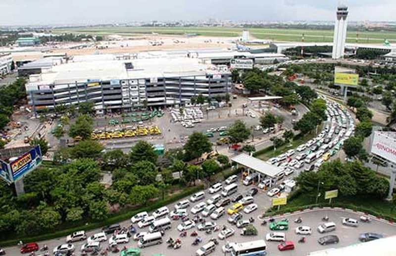Nhiều phương tiện lưu thông bên ngoài sân bay Tân Sơn Nhất. Ảnh: N.TÂN