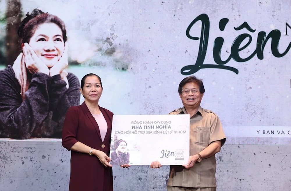 Đại diện nhóm làm sách trao tượng trưng kinh phí xây dựng nhà tình nghĩa cho Hội hỗ trợ gia đình liệt sĩ TP.HCM.