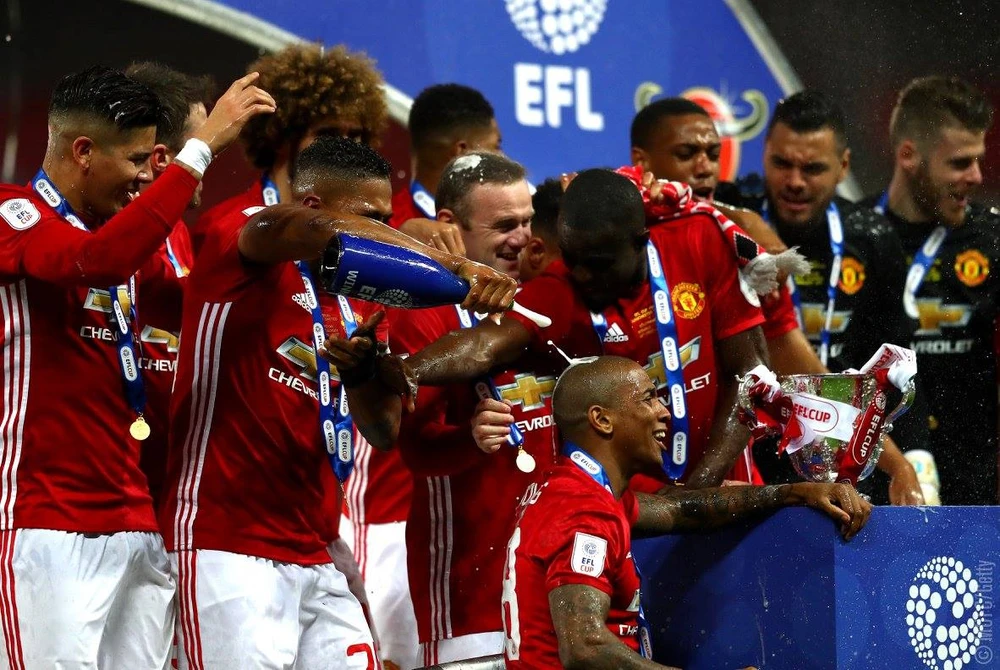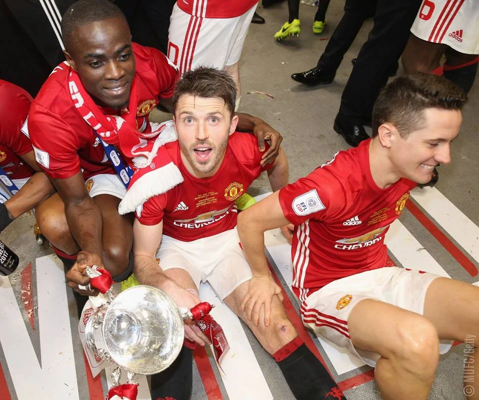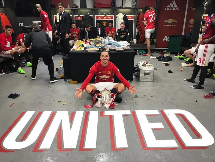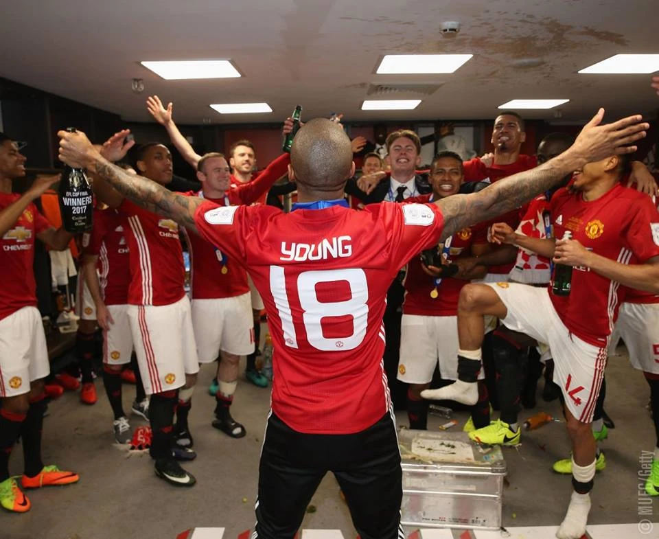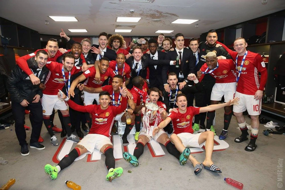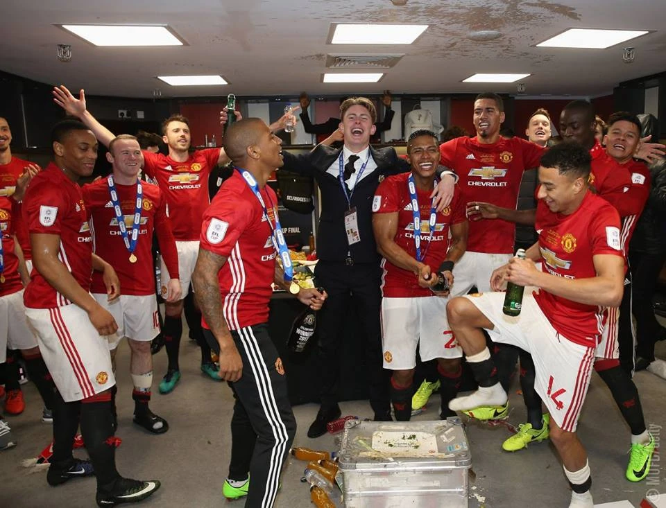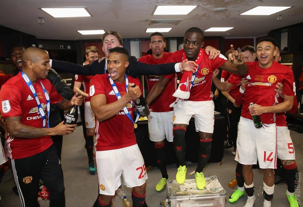 Trong phòng thay đồ, các cầu thủ Man United bắt đầu mở tiệc ăn mừng.
