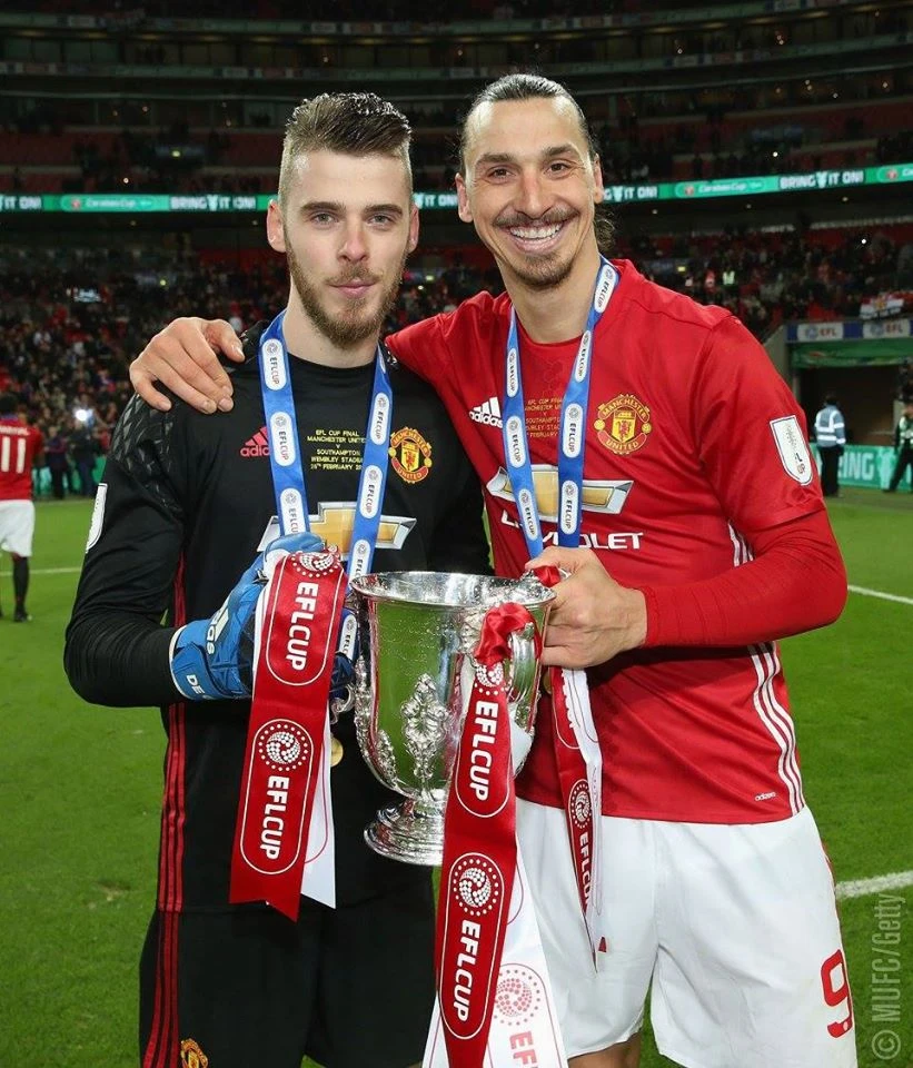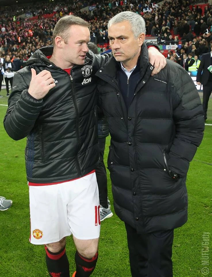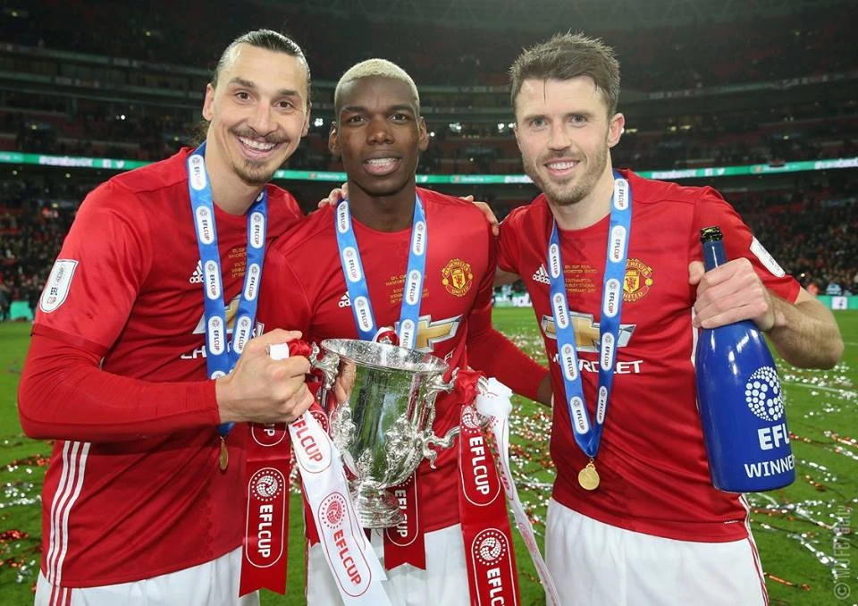 Người hùng Ibrahimovic, Fellaini và đội trưởng Rooney bên chiếc cúp vô địch.