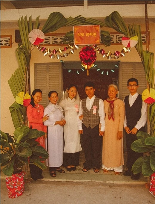 Bộ ảnh “Cưới sum vầy” đã được thực hiện với những sự đầu tư và cố gắng không chỉ của riêng các bạn trẻ, mà còn là có sự góp sức của các cụ bà sống tại nhà dưỡng lão Mái ấm Thiên Ân (phường Tam Phú, quận Thủ Đức).