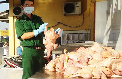 Trạm Kiểm dịch động vật Thủ Đức (TP.HCM) phát hiện hàng trăm con gà làm sẵn biến chất, hôi thối. Ảnh: TRẦN NGỌC