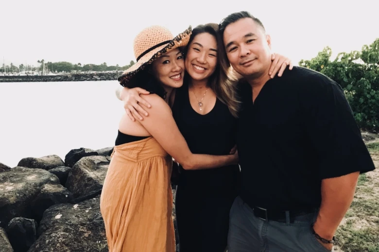 Võ sĩ Angela Lee (giữa) cùng cha mẹ.