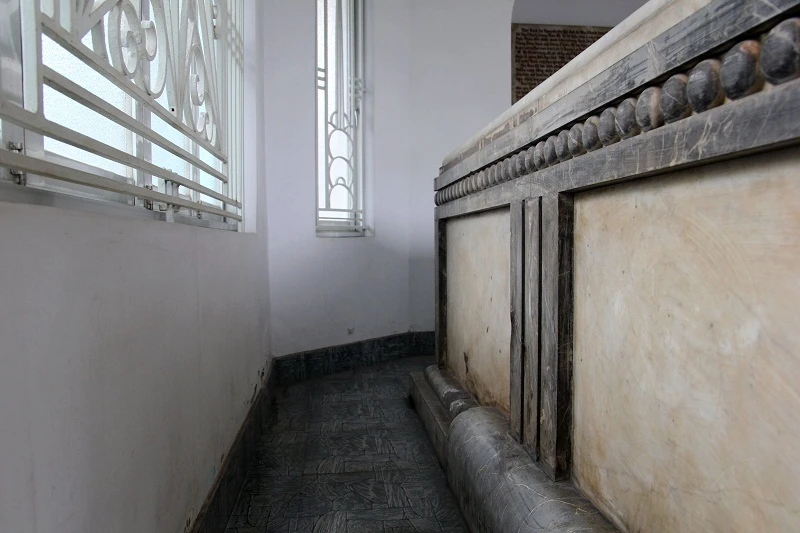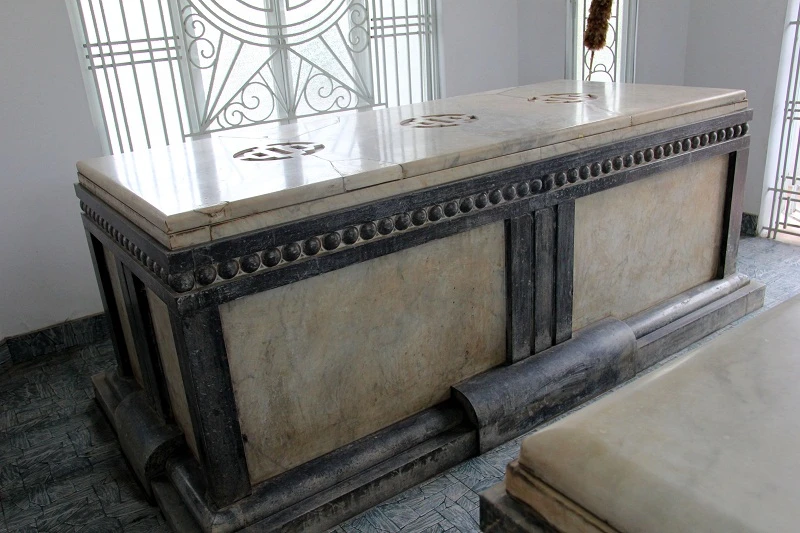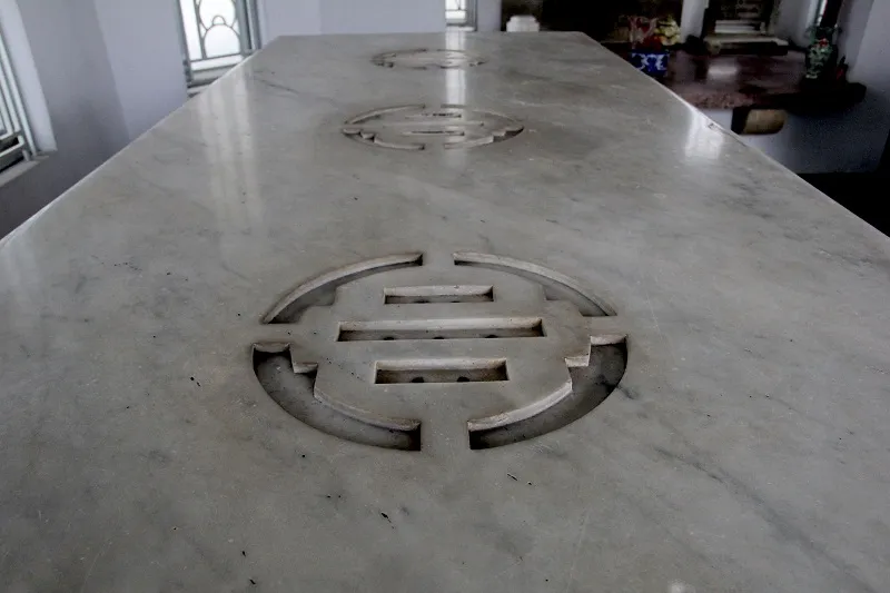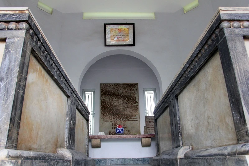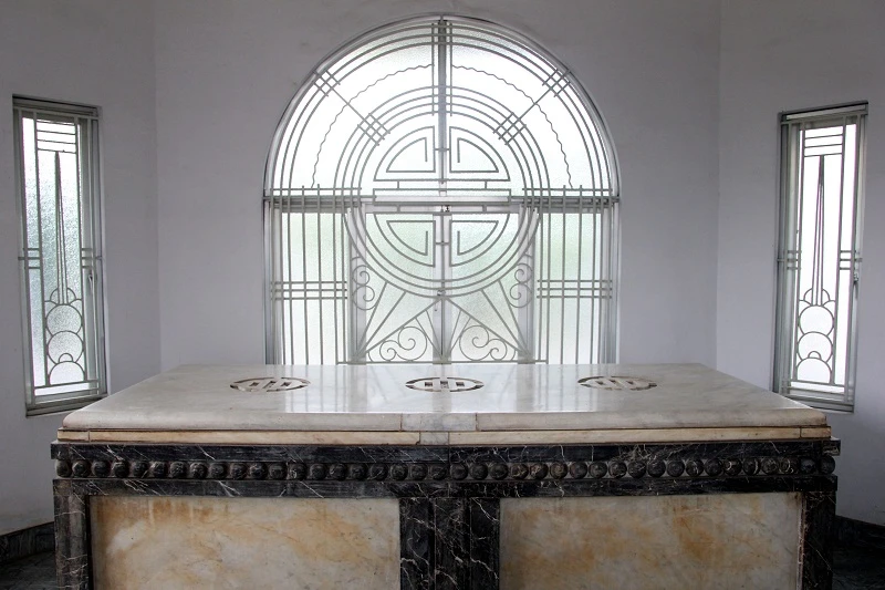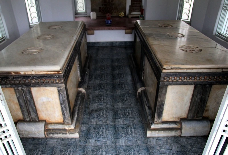 Cổng vào nhà mồ, bên trong là mộ song táng bằng đá cẩm thạch.