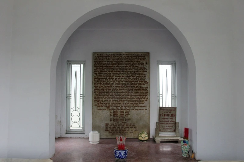 Phía sau hai mộ xây một bàn hương án bằng đá mài, trên bàn hương án đặt một lư hương và bình hoa cùng bài vị thờ bà họ Lý. Trên bài vị khắc chữ “Nơi an giấc nghìn thu của bà Lý Thu Liên sinh năm 1888, qua đời ngày 02 tháng 05 năm Giáp Ngọ (2-6-1954) tại Chợ Lớn”. Trên vách tường sau có gắn một tấm bia đá cẩm thạch cao lớn, khắc chữ Quốc ngữ ghi lại thân thế và công đức người quá cố.
