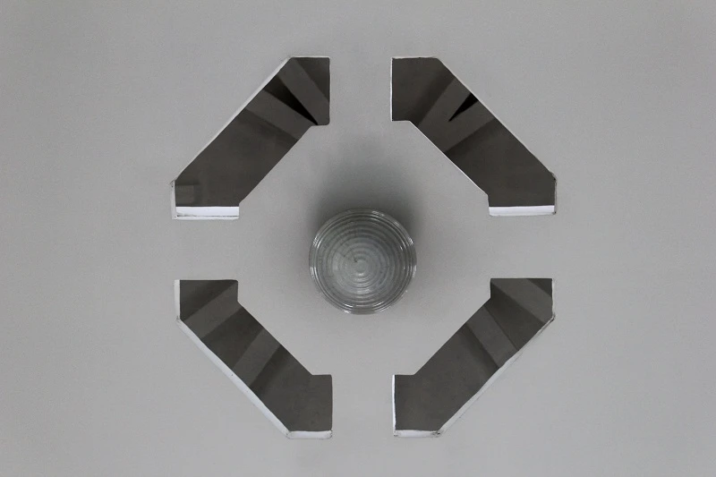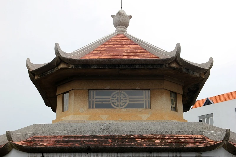 Nhà mồ hình bát giác khá cao, trên tường đính nhiều hoa văn trang trí.