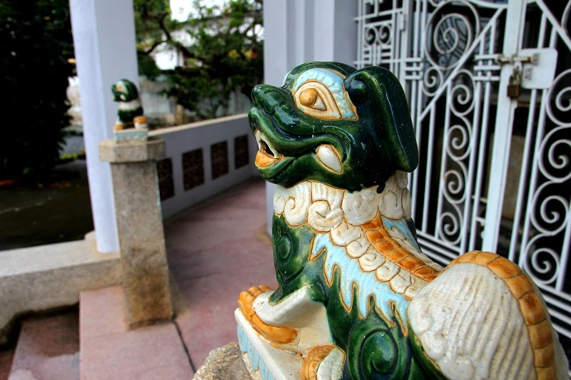 Hai con kỳ lân chắn giữ trước cổng nhà mồ.