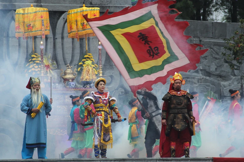 Sau phần tái hiện nghi lễ, đại diện chính quyền địa phương cùng đông đảo người dân đã kính cẩn dâng hương, hoa tri ân công lao của hoàng đế Quang Trung ngay dưới chân tượng đài khu tưởng niệm.