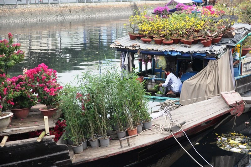Ghe thuyền san sát với đủ loại hoa, cây khoe sắc khoe dáng mỗi dịp xuân hằng năm.