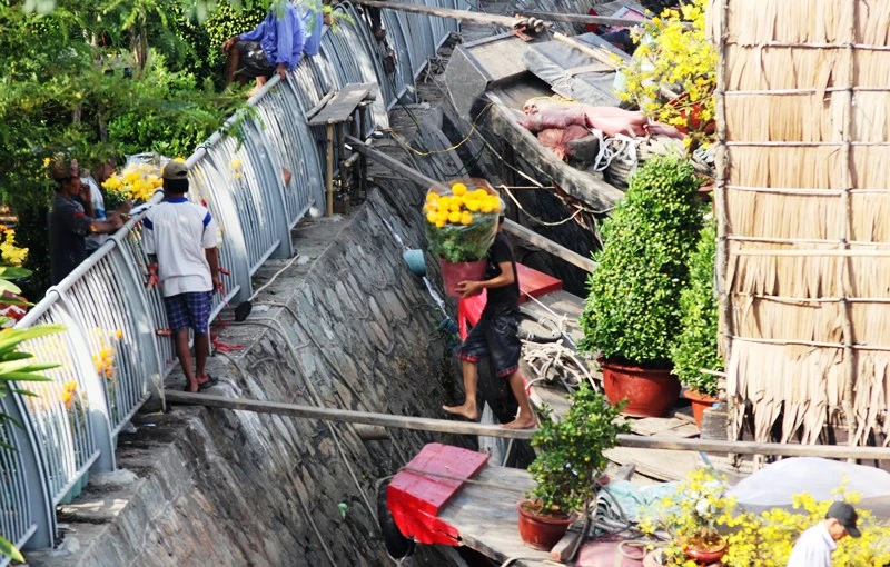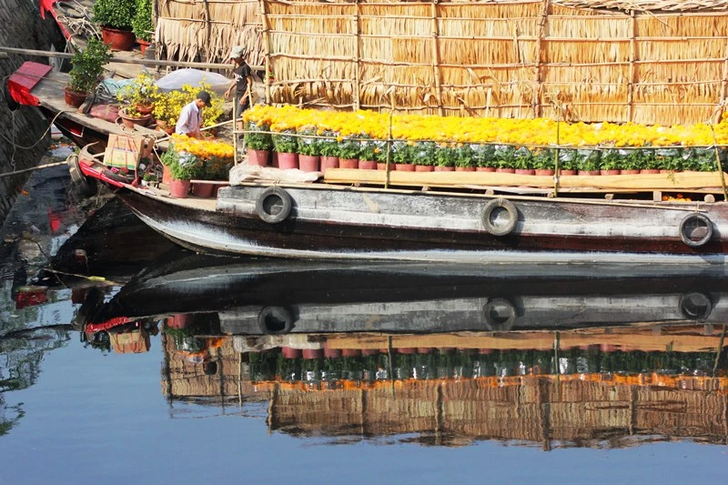 Trên bến dưới thuyền là cảnh đẹp thường niên đều được tái hiện tại Bến Bình Đông với dòng kênh Tàu Hũ mỗi dịp Tết đến Xuân về.