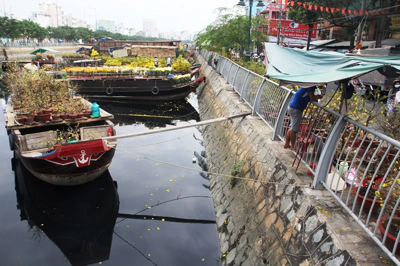 Chợ hoa trên Bến Bình Đông kéo dài trên khoảng 2 cây số dọc kênh Tàu Hũ từ phường 13 đến phường 14, quận 8.