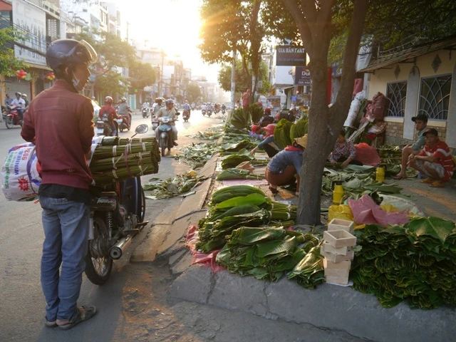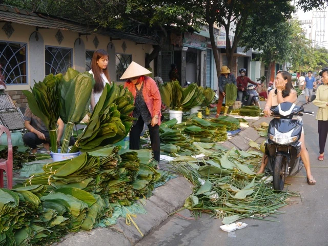 (PLO)- Cứ vào khoảng 20-23 tháng Chạp hằng năm, chợ lá dong lại họp tại ngã ba Ông Tạ (trên đường Cách Mạng Tháng Tám và Phạm Văn Hai, quận Tân Bình, TP.HCM). Tuy không có băng rôn, biển hiệu nhưng cảnh người mua-kẻ bán vẫn luôn nhộn nhịp.