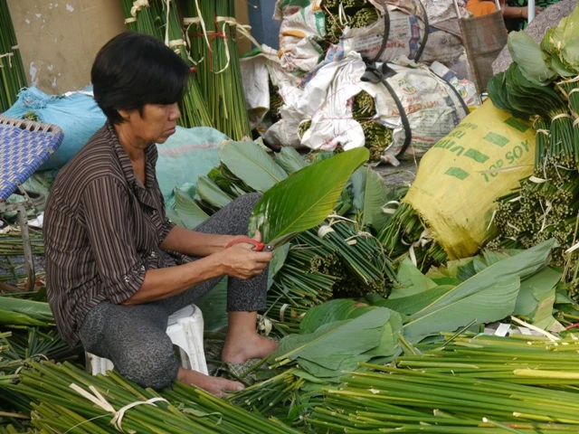 Độc đáo chợ lá dong giữa Sài Gòn