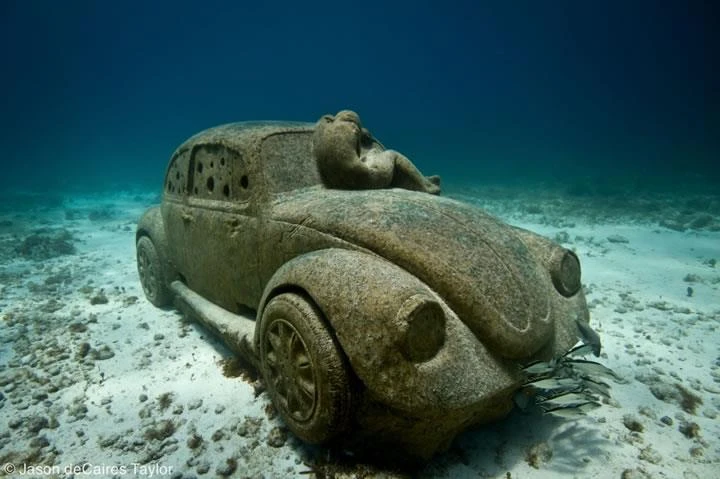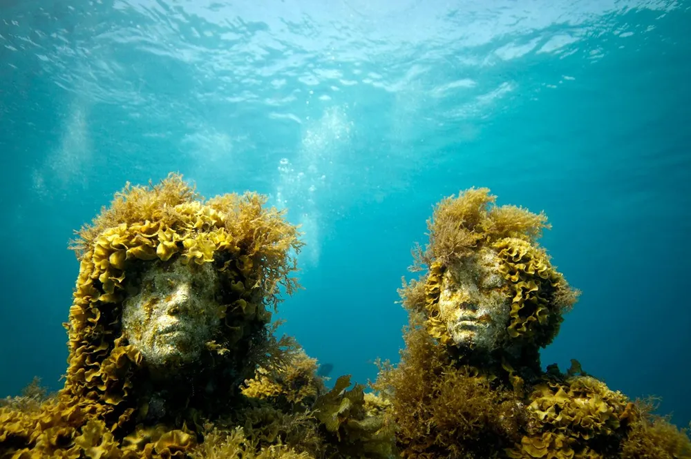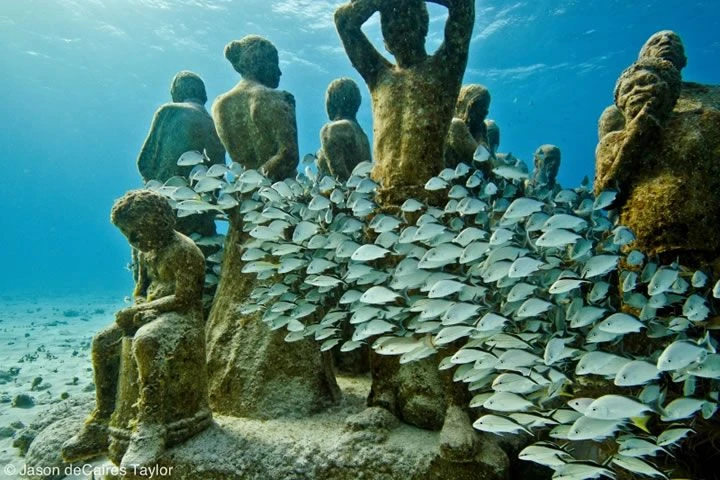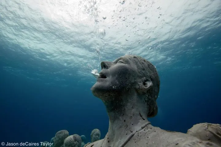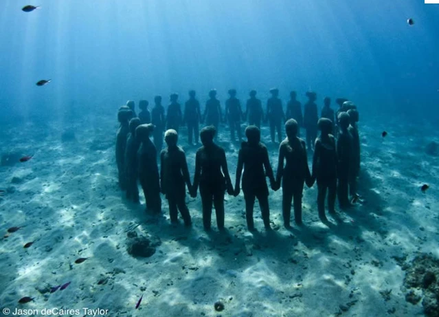 Các tác phẩm điêu khắc của anh được sắp đặt tại một vùng biển có độ sâu 2,8 m.