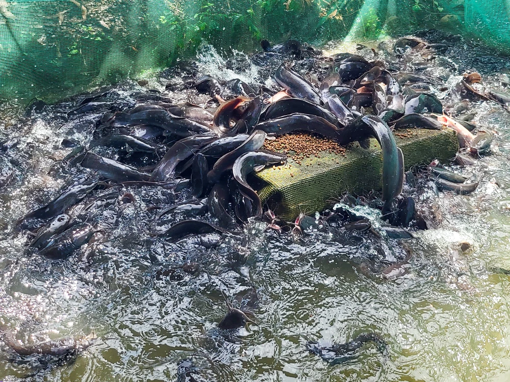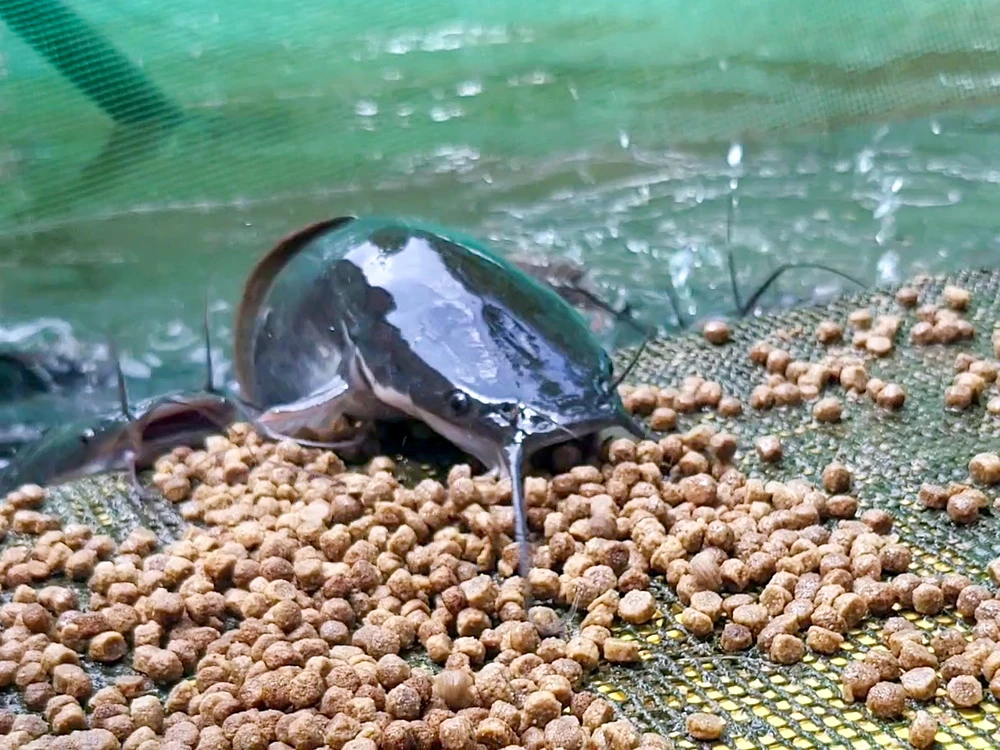 Ông Tâm tiết lộ, để đàn cá trê có thể lên cạn ăn mồi phải mất nhiều tháng tập luyện, bước đầu trong lúc cho cá ăn ông gom đàn cá lại để cho đàn cá dạn dĩ hơn.