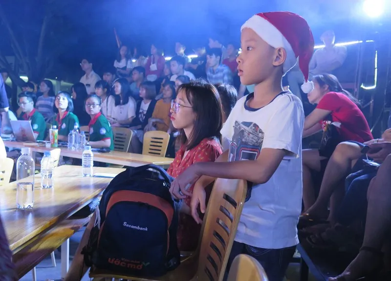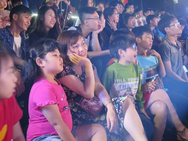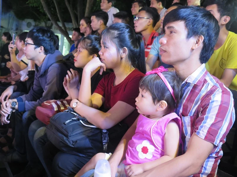 Dù đêm diễn kéo dài đến gần 11 giờ đêm nhưng đông khán giả là các bạn trẻ và những gia đình lân cận trường đến theo dõi.