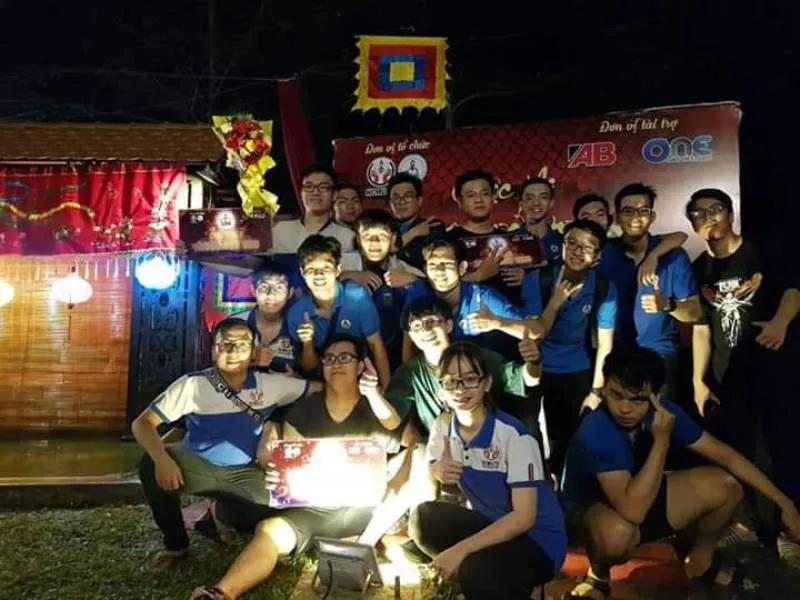 Nhóm sinh viên giành giải nhất chụp ảnh lưu niệm sau đêm diễn