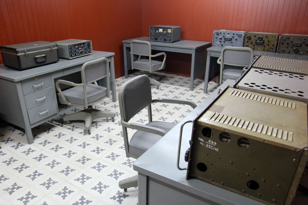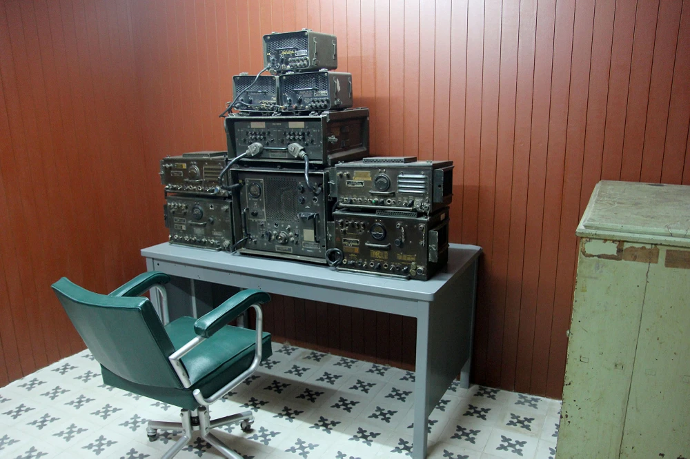 Đây là các thiết bị trong một phần khu vực thông tin liên lạc. Tại đây có nhiều phòng nhỏ khác, là nơi nhận, chuyển, mã hóa các công điện, thay thế đài phát thanh trên mặt đất khi có chiến sự xảy ra.