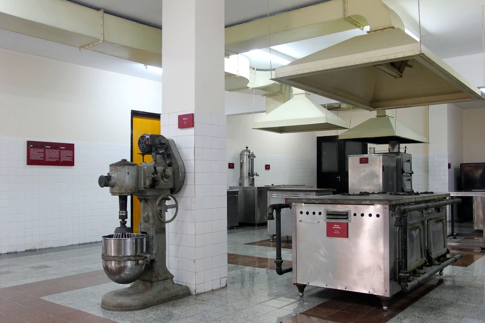 Ở phía cuối đường hầm là phòng bếp, nơi phục vụ các tiệc chiêu đãi trọng thể trong dinh Độc Lập như lễ quốc khánh, lễ tuyên thệ nhậm chức, hay chiêu đãi các nguyên thủ quốc gia.