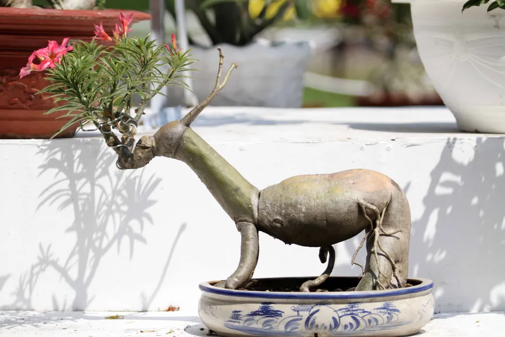 Tuy năm nay thời tiết lạnh nên sứ cảnh-một trong các bộ môn luôn thu hút khách tham quan không có nhiều hiện vật. Trong ảnh là một cây sứ cảnh hình dê.
