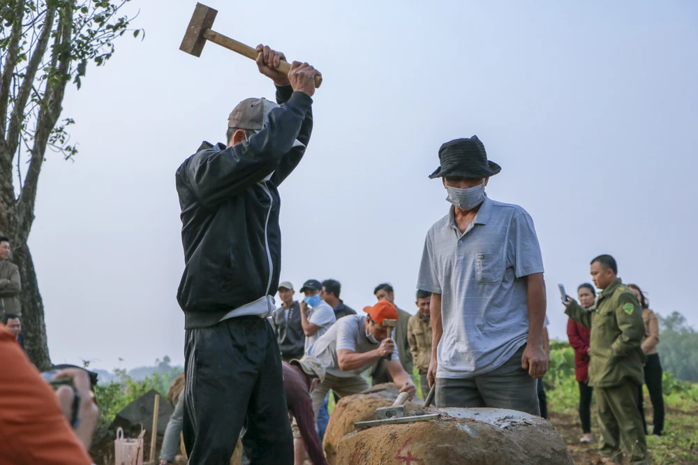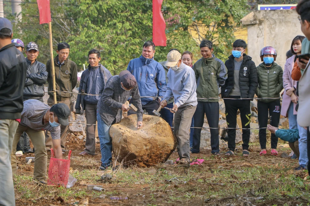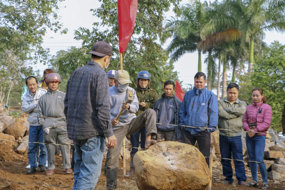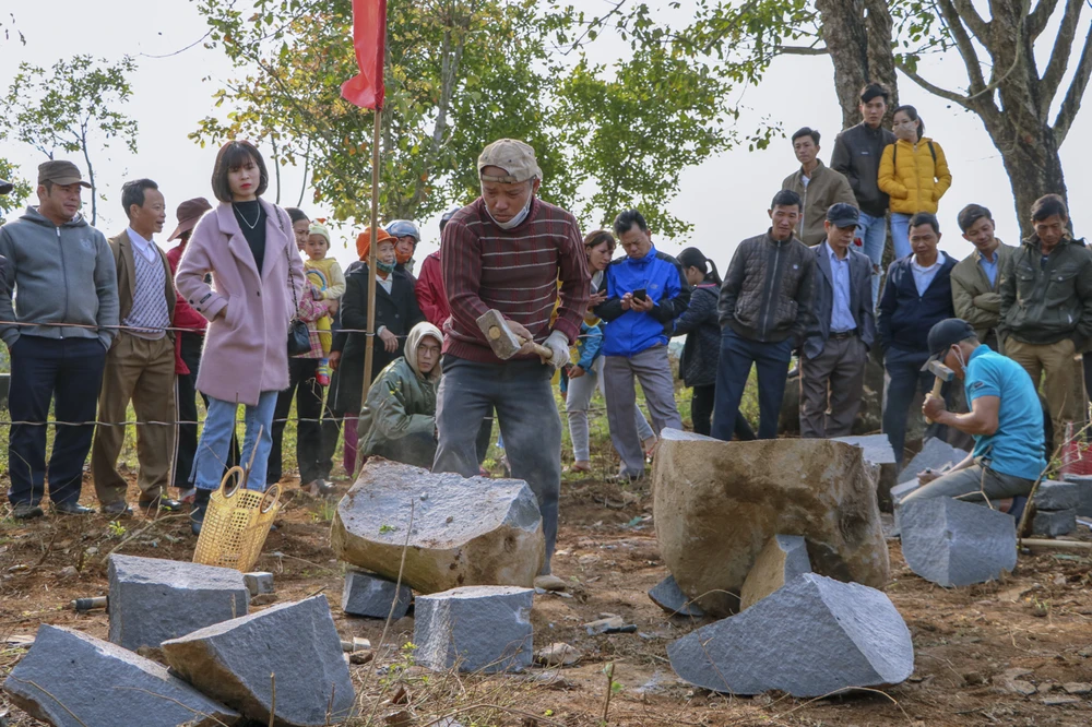 Sáng 30-1 (mùng 6 tết), UBND xã Gio Hòa, huyện Gio Linh, Quảng Trị tổ chức hội thi chẻ đá. Ảnh: B.TRÂM