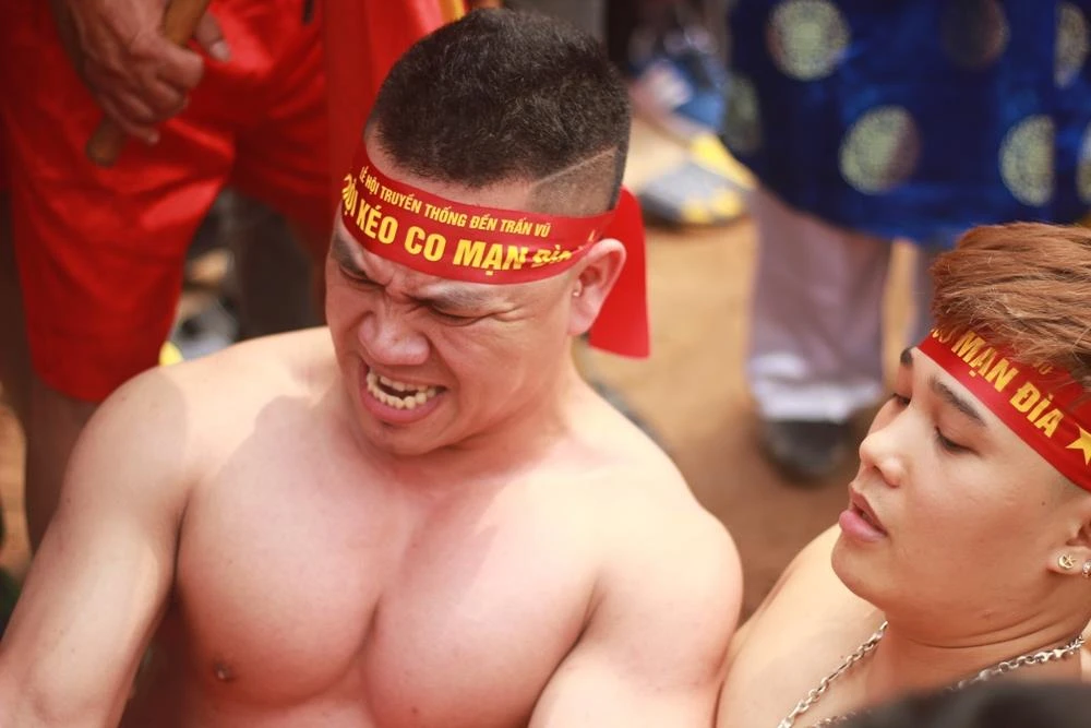 Nghi thức “Kéo co ngồi” được tổ chức trong lễ hội đền Trấn Vũ vào ngày mùng 3 tháng 3 âm lịch hàng năm với 3 mạn tham gia: mạn Chợ, mạn Đường và mạn Đìa.