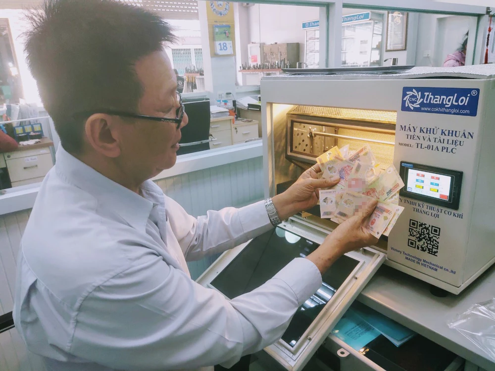 Ở Việt Nam, tại một số điểm có người nhiễm COVID, tiền được xử lý bằng cách xịt cồn khiến những tờ tiền bị ẩm ướt, rất khó chịu cho người dùng. Trăn trở làm sao để làm sạch cho những tờ tiền tiềm ẩn vô vàn vi khuẩn, thậm chí cả vi khuẩn COVID-19, ông chủ doanh nghiệp cơ khí Thắng Lợi bắt tay vào sáng chế máy xử lý vi khuẩn cho tiền!