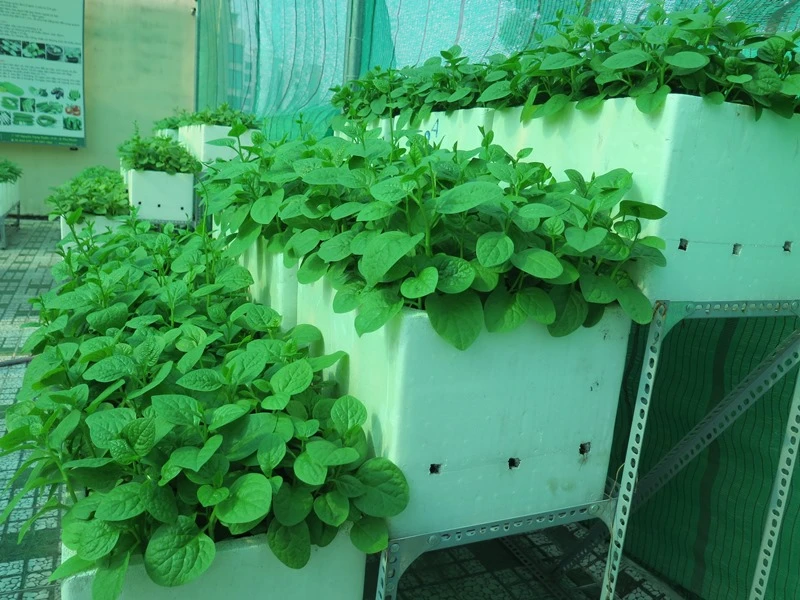 Những thùng rau mồng tơi xanh tươi sắp được thu hoạch