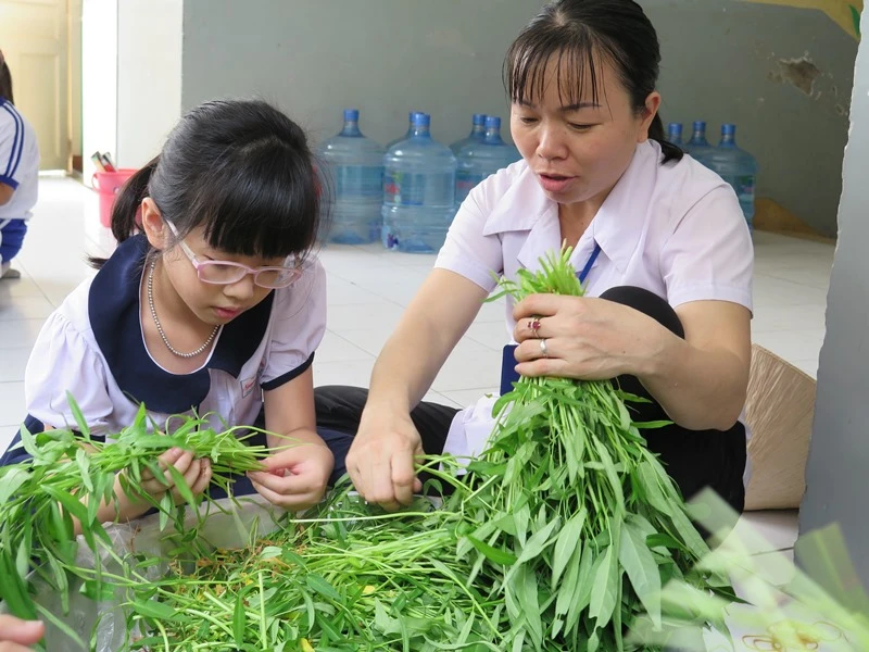 Cô trò cùng bó rau