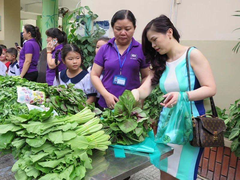 Phụ huynh mua rau tại các gian hàng