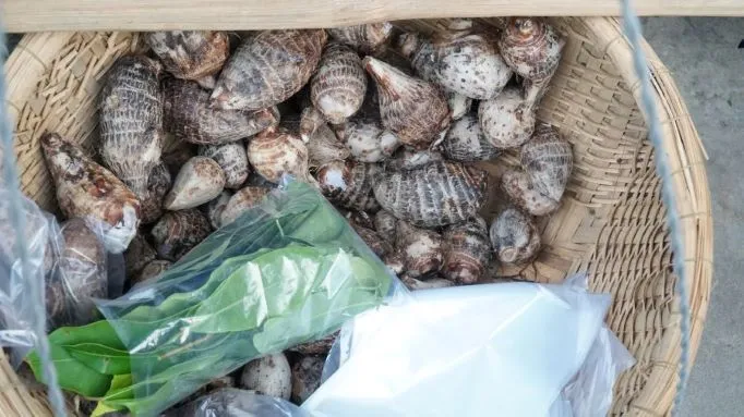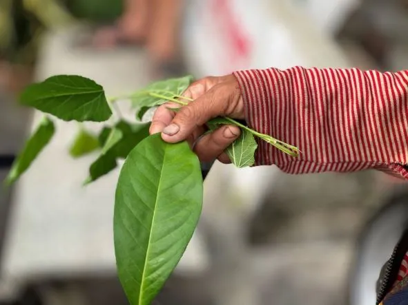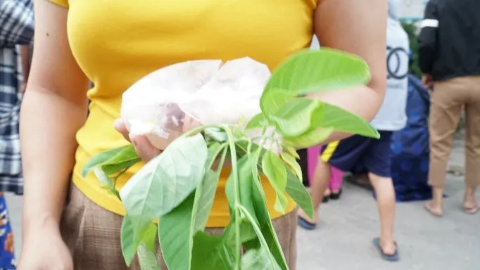 Người mua hàng lấy lá cây làm tiền để mua hàng, người bán nhận lá làm may mắn.