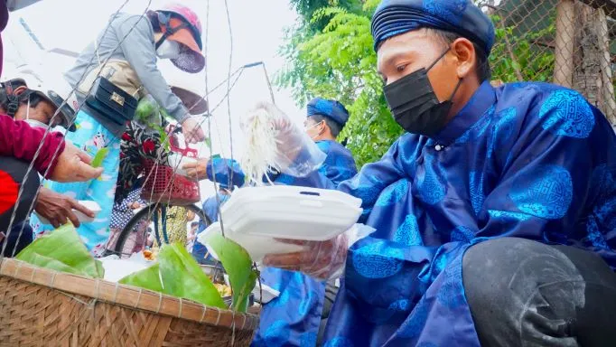 Độc đáo của phiên chợ là chỉ lấy lá cây để mua thức ăn nho nhỏ, như: xôi, khoai luộc, cơm chay, nước giải khát, bánh mì, hủ tiếu xào, kẹo đậu phộng, bánh ú, bánh tét... Ai muốn mua món ăn nào chỉ việc đưa một chiếc lá cây (không phân biệt các loại lá) cho người bán, nhận món ăn và kèm theo đó là lời cảm ơn nhau, chúc nhau những lời tốt lành đầu năm mới. Đến chợ, người mua hàng lấy lá cây làm tiền để mua hàng, người bán nhận lá làm may mắn.