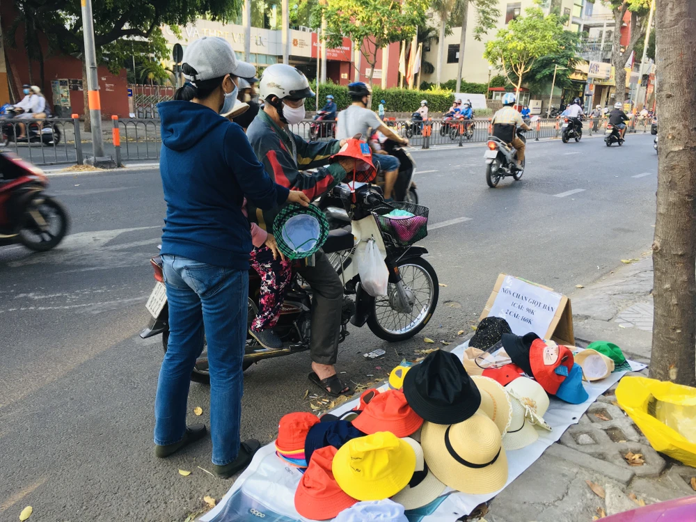 Người dân TP.HCM đi tìm mua nón chống dịch COVID-19. Ảnh: NGUYỄN TRÀ