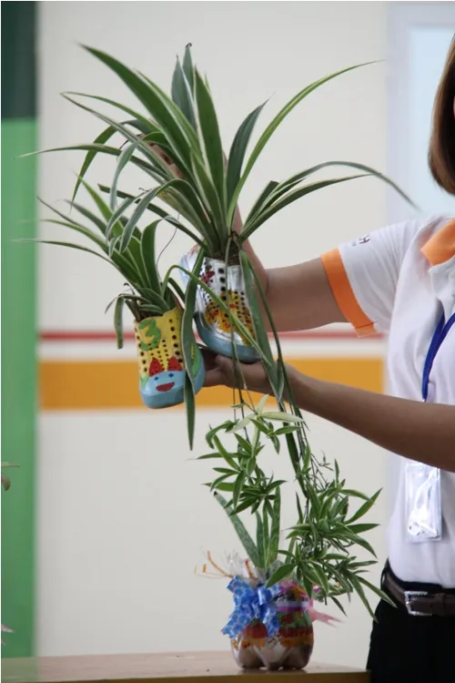 Đôi dép đã bỏ đi được các bạn tái chế thành nơi trồng cây, treo lên rất đẹp mắt.