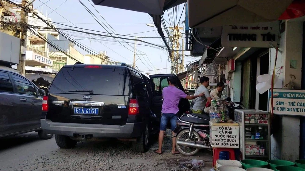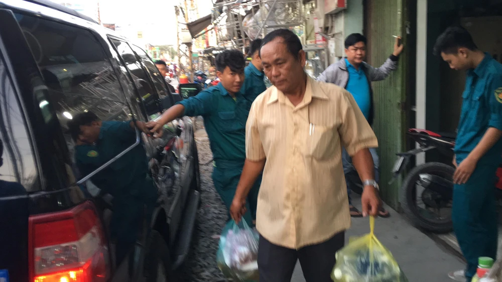 Chiều 12-4 xe chuyên dụng của PC02 chở Phúc "XO", em trai vài một người được cho là anh em họ hàng của Phúc xuống trụ sở công an xã Bà Điểm, huyện Hóc Môn.