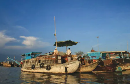 May mà giờ đây còn sót lại vài ba chợ nổi của thời xưa cũ, nhóm họp bởi những ghe thương hồ tứ xứ. Ðây là những ngôi nhà di động của một cái làng, hay đúng hơn là một cái chợ di động họp rồi tan theo mùa. Gọi làng vì đây như một “đơn vị hành chính” của giới thương hồ. Ăn ngủ, nấu nướng, giặt giũ… đều trên ghe. Có những người còn trồng vài bụi hành, bụi ớt, thêm vài ba chậu kiểng trên mui ghe, hoặc nuôi thêm con chó, con mèo làm bạn. Ðó là chưa kể đến một số dịch vụ “ăn theo” như sửa tivi, điện thoại, hớt tóc cho phái nam, chăm sóc sắc đẹp cho nữ giới… Gọi chợ vì đây là nơi trao đổi, mua bán các sản vật “tự sản tự tiêu” từ các vùng quê mang đến, chủ yếu là các loại trái cây, rau củ. Cách tiếp thị cũng độc đáo: Mỗi chiếc ghe cắm một cây sào tre dài treo các loại củ quả lủng lẳng như cây nêu đón tết, nhiều màu sắc…