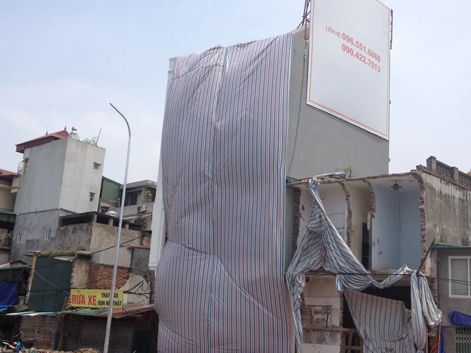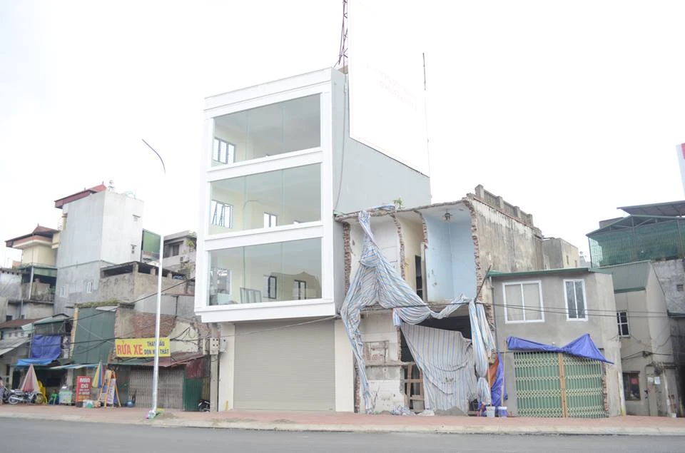 Theo đó, ngôi nhà bốn tầng gần như đã hoàn thiện nằm ngay gần ngã tư Trần Khát Chân - Lò Đúc, phần tầng 1 được xây dựng nằm phía trong vỉa hè, tuy nhiên, từ tầng 2 trở lên đều “thò” ra bên ngoài, chiếm lĩnh không gian vỉa hè.