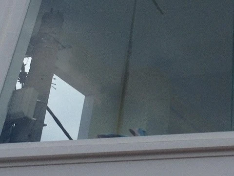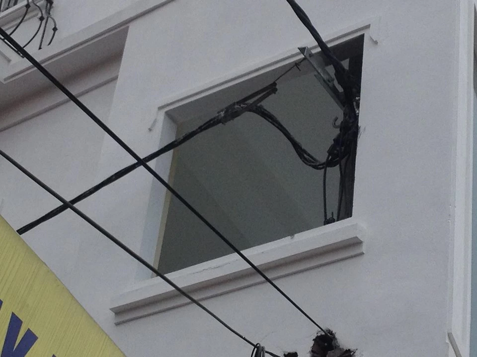 Cửa kính cũng bị đục thủng để dây điện có "đường đi"