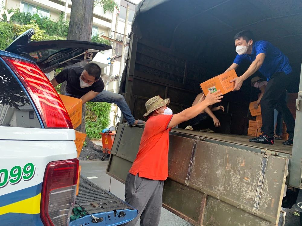 Ròng rã suốt gần ba tháng nay, tại Nhà thiếu nhi quận 9, Nhà văn hóa Thủ Đức, Ủy ban MTTQ TP.HCM tại quận 1, từng hàng xe luôn ra vào tấp nập từ sáng tới chiều. Những chuyến xe tải chở hàng từ khắp nơi đổ về, những đoàn xe bán tải nối đuôi nhau nhận hàng rồi tỏa đi khắp các quận, huyện, các bếp ăn, bệnh viện dã chiến, các cơ sở tôn giáo…