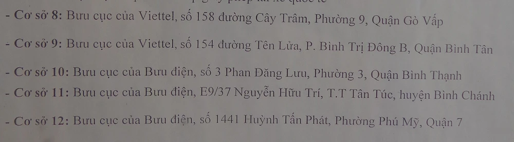 Riêng cơ sở 252 Lý Chính Thắng, phường 6, quận 3 và 937 Tạ Quang Bửu, phường 5, quận 8 còn có dịch vụ đổi bằng qua đăng ký số thứ tự tại tổng đài 1081.