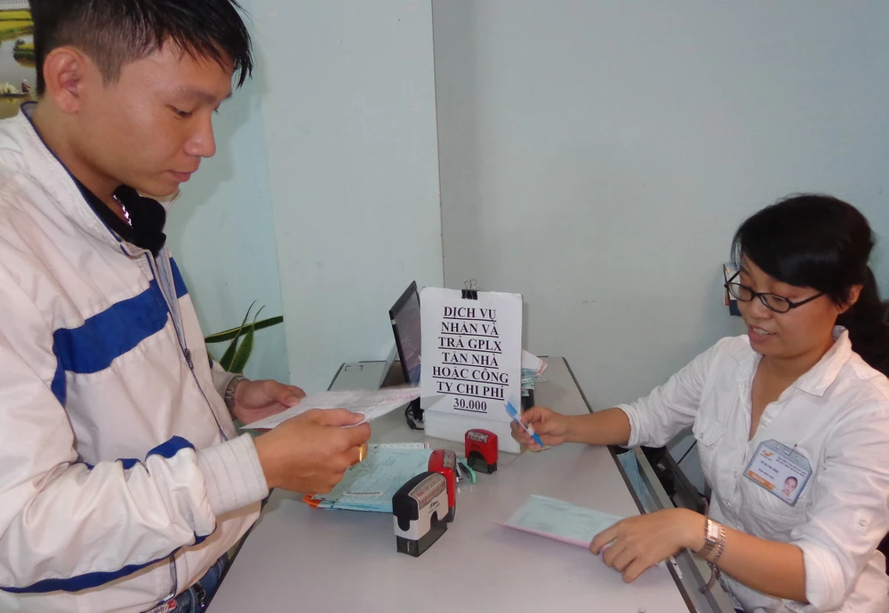Tại bảy cơ sở thuộc Sở cũng đã mở dịch vụ trả bằng lái tận nhà, tận công ty với chi phí 30.000 đồng.