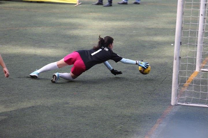 Thủ môn Nguyễn Châu trong một nỗ lực cứu thua cho đội nữ Pháp Luật TP.HCM.