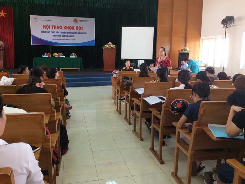 Nhiều phụ nữ chia sẻ sôi nổi tại hội thảo khoa học về bình đẳng giới.