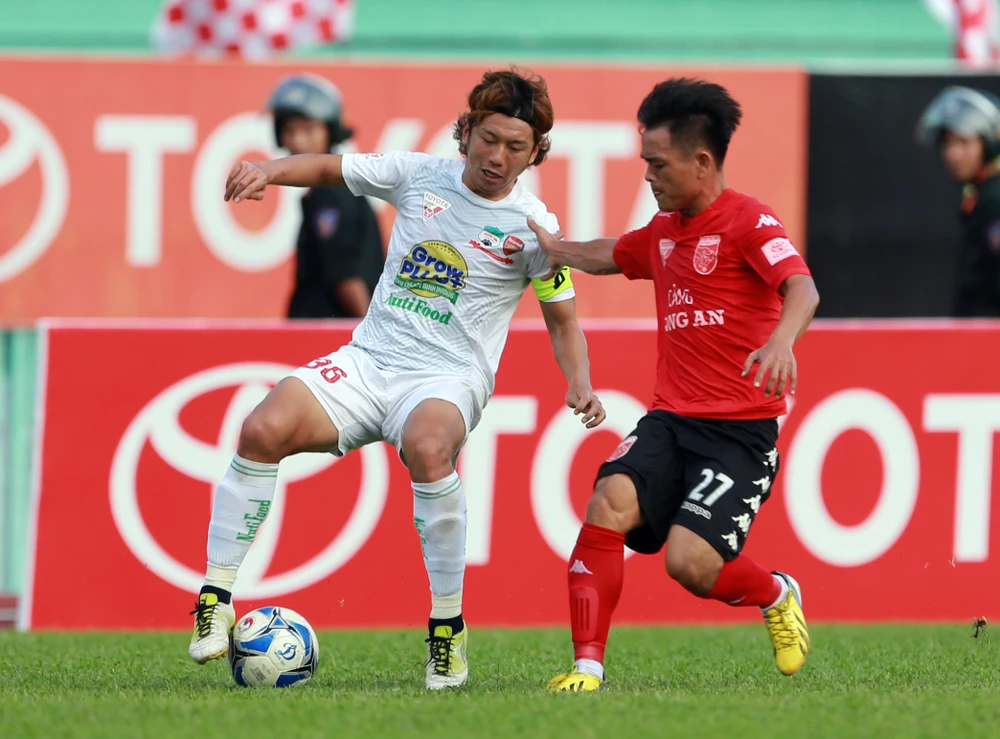 Ideguchi (trái) không có tên trong danh sách đăng ký của HA Gia Lai sau khi trụ hạng