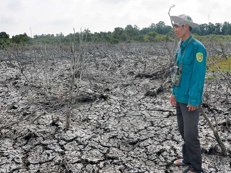 Vừa nghe hỏi biến đổi khí hậu đã ảnh hưởng gì đến vùng đất ngập nước này, anh Nguyễn Công Toại, Phó Giám đốc Khu bảo tồn Láng Sen, đã thốt lên: “Chưa thấy năm nào khô hạn như năm nay. Nắng nóng kéo dài, nhiều tiểu khu không còn nước, chúng tôi phải dời cá đi nơi khác”.